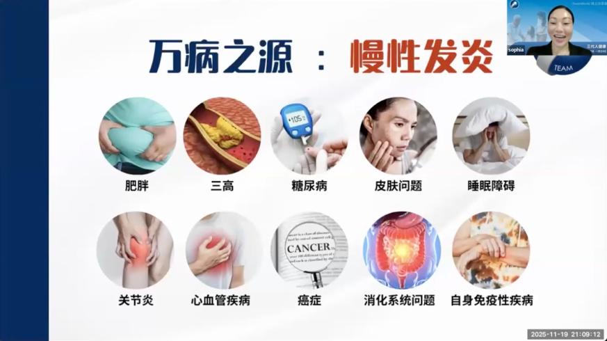 慢性发炎被视为“万病之首”,是多种健康问题的共同根源。它不仅与肥胖、三高、糖尿病等代谢性疾病有关,也可能引发皮肤敏感、睡眠障碍、关节炎、心血管疾病、消化系统问题,甚至癌症与自体免疫疾病。世界卫生组织指出,全球超过一半的疾病与慢性发炎有关。换言之,在三个人当中,就有两个人的健康风险,源自长期的慢性发炎。