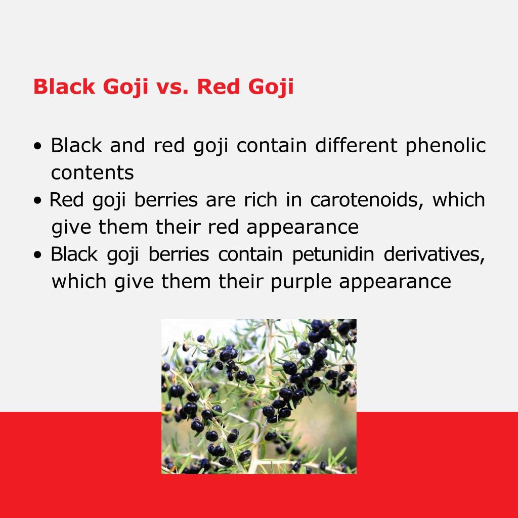Black goji berries contain 𝟐𝟎 𝐭𝐢𝐦𝐞𝐬 𝐦𝐨𝐫𝐞 𝐚𝐧𝐭𝐡𝐨𝐜𝐲𝐚𝐧𝐢𝐧𝐬 𝐭𝐡𝐚𝐧 𝐛𝐥𝐮𝐞𝐛𝐞𝐫𝐫𝐢𝐞𝐬 and 𝟕 𝐭𝐢𝐦𝐞𝐬 𝐦𝐨𝐫𝐞 𝐩𝐡𝐞𝐧𝐨𝐥𝐢𝐜 𝐜𝐨𝐦𝐩𝐨𝐮𝐧𝐝𝐬, making them one of the richest sources of antioxidants. These compounds help 𝐟𝐢𝐠𝐡𝐭 𝐨𝐱𝐢𝐝𝐚𝐭𝐢𝐯𝐞 𝐬𝐭𝐫𝐞𝐬𝐬, protect your cells, and slow down aging.