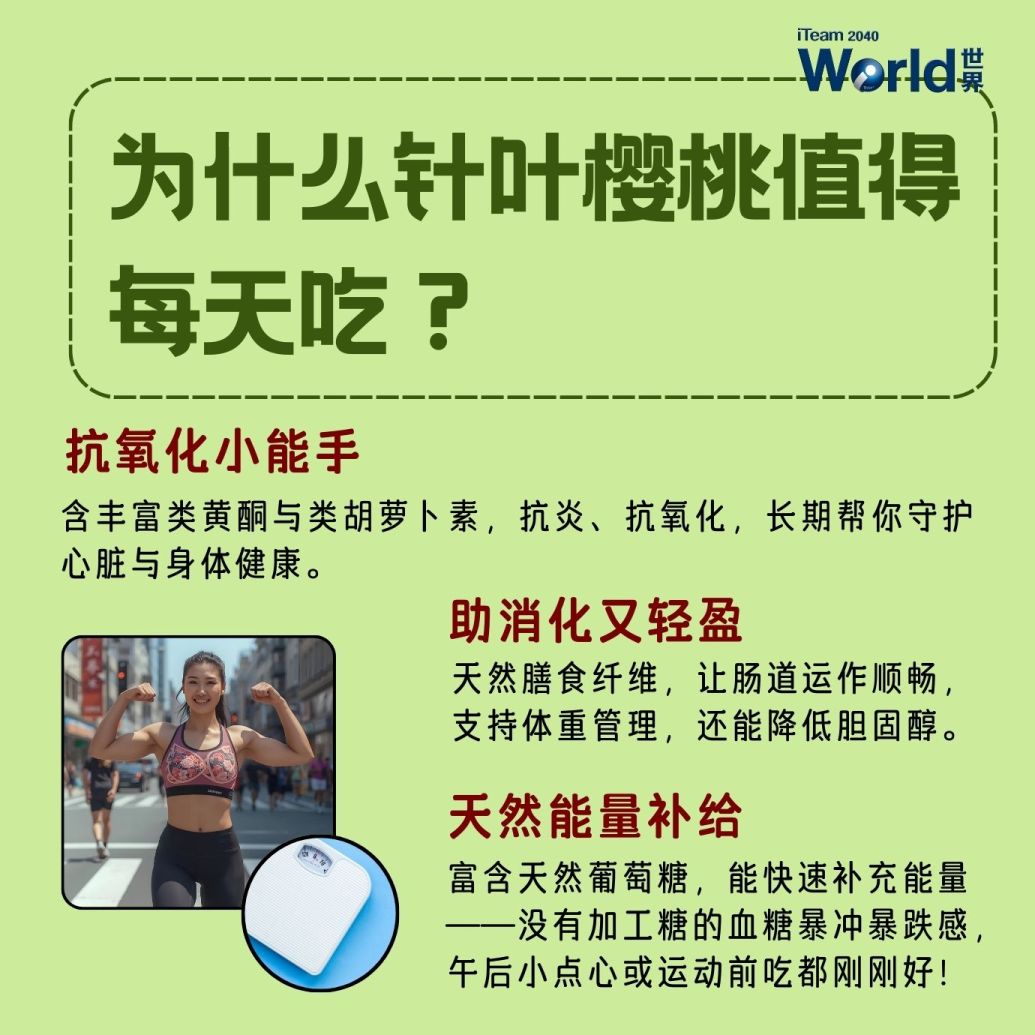 认识一下针叶樱桃——来自中南美洲的热带小宝石!小小一颗,却能带来大大的健康好处。💪✨