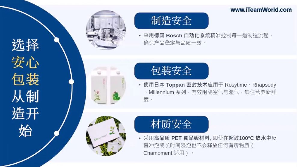 公司一路以来投资了超过40亿的资金,在世界不同的地方打造出国际级的一个工厂,包括我们在美国,犹他州还有加州都有工厂,上海还有新加坡。 那每一间的工厂呢,都不是外包的,随随便便的给别人,而是从我们的原料测试到包装,全程都是我们自己去把关,所有每一步的流程都跟着国际健康食品安全的这个标准来做一个连接,每一个环节都是该严格的,我们一点都不放松。 为了让我们的营养不流失,成分更加的稳定。